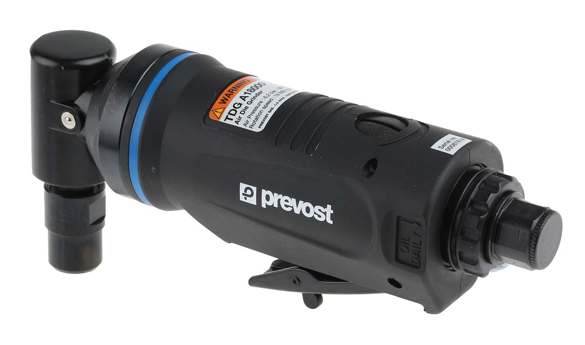 This is 3 mm 6 mm Air Powered 90° Axial Grinder manufactured by PREVOST. The manufacturer part number is TDG A18000. It has a robust speed of 18000rpm. It has a/an angle air die ginder type grinder .