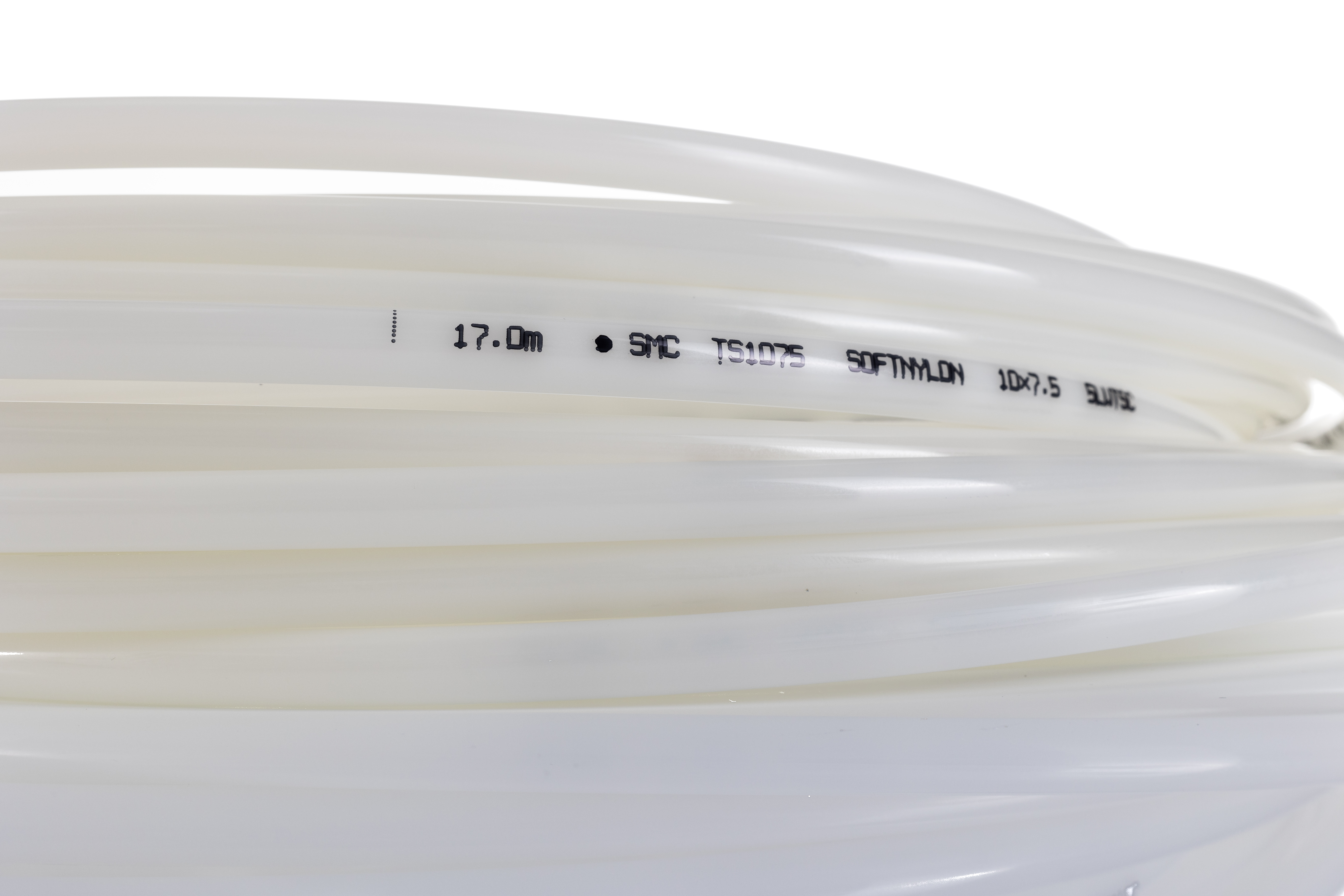 This is White 20m Nylon 11 Nylon 12 Air Hose Application General Pneumatic Tubing manufactured by SMC. The manufacturer part number is TS1075W-20. Its hose inside diameter is about 7.5mm . It features 13 bar maximum operating pressure. It has a maximum operating temperature of +100°c. It has a decent white colour. The product is made from highly stable and reliable nylon 12. It has a standard 10mm hose outside diameter . Applications Information involves general pneumatic tubing. Its accurate length is 20m. The product has a ts manufacturer series. Whereas, the minimum operating temperature of the product is -40°c. It contains 1 high-quality tubes .