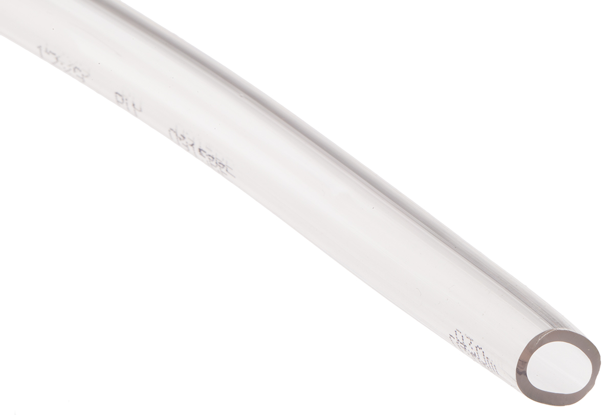The RS PRO 917-2413 polyurethane air hose is a clear-PVC style 12 mm outside diameter, 9 mm inside diameter hose, 30 meters in length, rated for a maximum operating pressure of 6.5 bar and a minimum temperature down to -50 °C. The low-temperature-flexible polyurethane construction ensures abrasion and kink resistance, making it well-suited for pneumatic control systems, chemical transfer tubing and compressed-air applications.