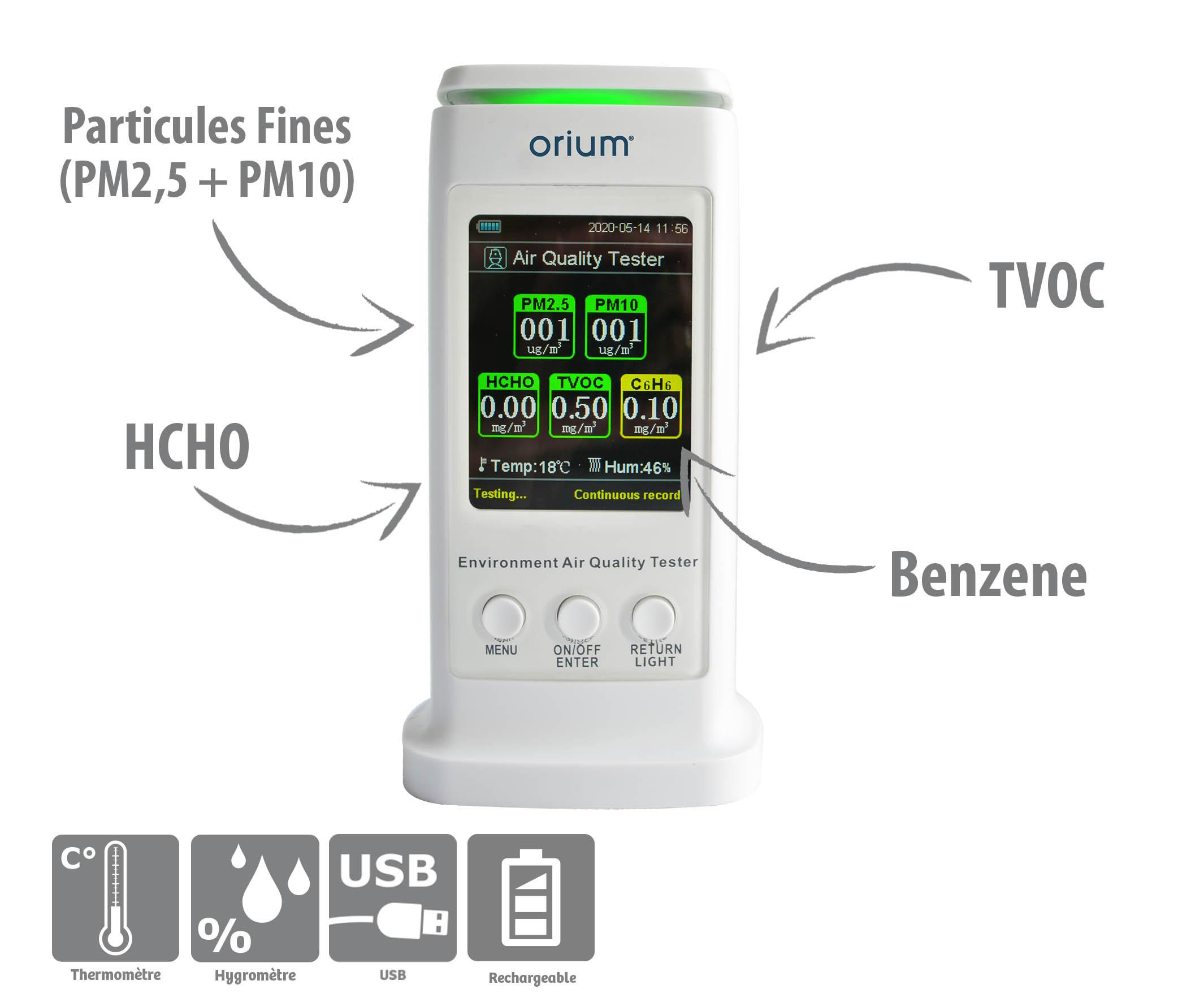 This is Data Logging Air Quality Meter manufactured by Orium. The manufacturer part number is 23662. It features a remarkable backlit lcd display. The product has +45°c maximum temperature. It has about ± 1.5 °c best temperature measurement accuracy . While it has quaelis 40 of model number. It has a 1°c temperature measurement resolution . It has about ± 5 %rh best humidity measurement accuracy . Moreover, it has benzene, formaldehyde, humidity, pm 2.5, pm 10, temperature, tvoc measurement parameters . It includes a data logging feature yes . Additionally, it has a maximum 90%rh humidity measurement . The product is a special air quality monitor equipment.