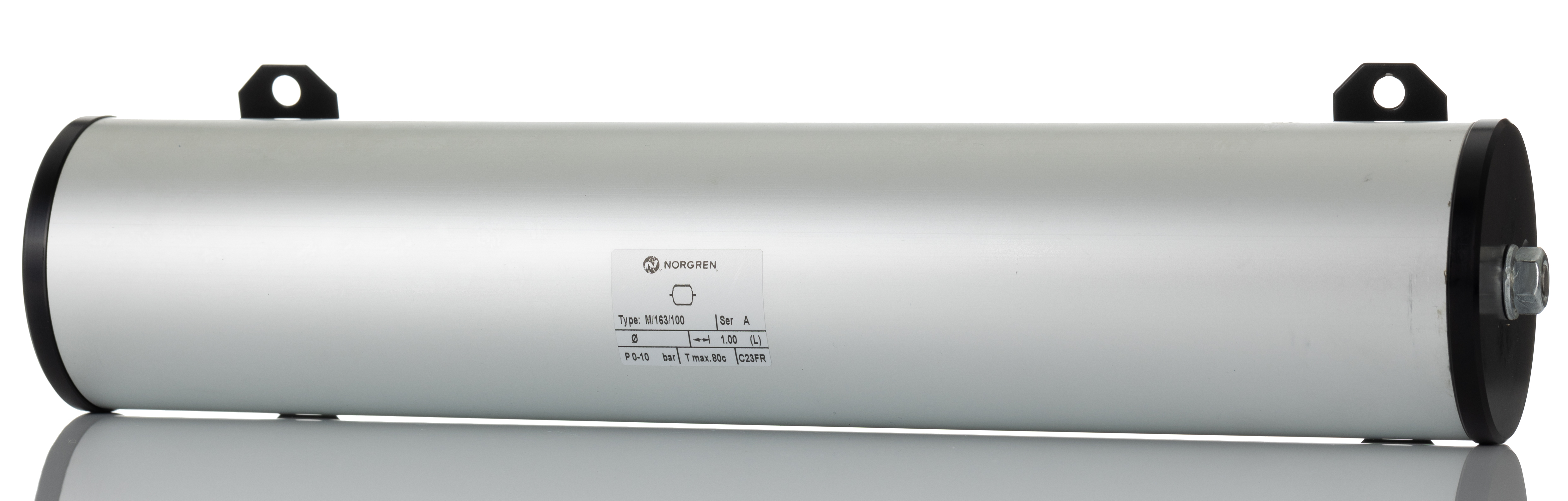 This is Air Reservoir 1 l G 1/8 M/163 Series 10bar manufactured by IMI Norgren. The manufacturer part number is M/163/100. Provides g 1/8 of port connection. It features maximum pressure of 10bar. It has a 1 l of overall volume . The product has a m/163 manufacturer series. Whereas, the minimum operating temperature of the product is -20°c. It has a maximum operating temperature of +80°c. With a 63.5mm reservoir bore .