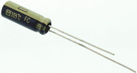 This is Aluminium Electrolytic Capacitor 39μF 35 V dc 5mm Through Hole FC Radial Series Lifetime 1000h +105°C manufactured by Panasonic. The manufacturer part number is EEUFC1V390. The given dimensions of the product include 5 (dia.) x 15mm. It has 500mω equivalent series resistance. It provides a 39 µf of capacitance value. It features ±20% of tolerance value. The product has been well-designed with radial construction. It has a maximum operating temperature of +105°c. The terminal is a through hole type. It features a given value of +20% tolerance plus. Furthermore, the lead has 0.5mm diameter. It harbors 3 μa of leakage current. The lead features 2mm pitch. Its diameter is 5mm. Furthermore, 235ma is the ripple current. The product is available in through hole configuration. The product fc radial, is a highly preferred choice for users. In addition, the height is 15mm. While it has tolerance minus of -20%. It carries a 35 v dc of voltage. Whereas, the minimum operating temperature of the product is -55°c. It provides a long-lasting service for a period of 1000h. This product use electrolytic technology.
