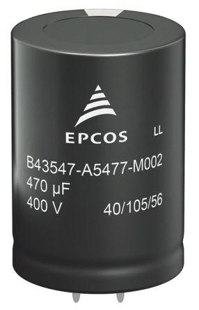 This is Aluminium Electrolytic Capacitor 470μF 450 V dc 30mm Through Hole B43544 B43544 Series Lifetime >175000h manufactured by EPCOS. The manufacturer part number is B43544A5477M000. The given dimensions of the product include 30 (dia.) x 55mm. It has 210mω equivalent series resistance. It provides a 470 µf of capacitance value. It features ±20% of tolerance value. The product has been well-designed with cylindrical construction. It has a maximum operating temperature of +105°c. The terminal is a through hole type. It features a given value of +20% tolerance plus. Furthermore, the lead has 0.8mm diameter. Its accurate length is 55mm. The lead features 10mm pitch. Concerning its package and casing, it is b43544. Its diameter is 30mm. Furthermore, 6.14a is the ripple current. The product is available in through hole configuration. The product b43544, is a highly preferred choice for users. While it has tolerance minus of -20%. It carries a 450 v dc of voltage. Whereas, the minimum operating temperature of the product is -40°c. It provides a long-lasting service for a period of >175000h. This product use electrolytic technology.