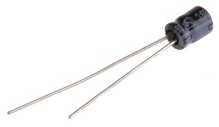 This is Aluminium Electrolytic Capacitor 2.2μF 50 V dc 4mm Through Hole KS Series Lifetime 1000h +85°C manufactured by Panasonic. The manufacturer part number is ECEA1HKS2R2. Its diameter is 4mm. Furthermore, 16ma is the ripple current. The product is available in through hole configuration. The given dimensions of the product include 4 (dia.) x 5mm. Furthermore, the lead has 0.45mm diameter. It features a given value of +20% tolerance plus. The product ks, is a highly preferred choice for users. Whereas, the minimum operating temperature of the product is -40°c. In addition, the height is 5mm. It provides a 2.2 µf of capacitance value. While it has tolerance minus of -20%. The product has been well-designed with radial construction. It carries a 50 v dc of voltage. It harbors 3 μa of leakage current. It provides a long-lasting service for a period of 1000h. The lead features 1.5mm pitch. It has a maximum operating temperature of +85°c. It features ±20% of tolerance value. The terminal is a through hole type. This product use electrolytic technology.