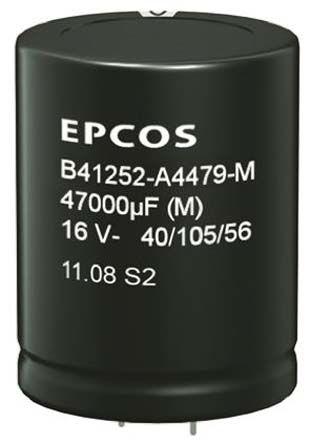This is Aluminium Electrolytic Capacitor 0.22F 25 V dc 76.9mm Screw Terminal B41560 Series Lifetime 3000h +105°C manufactured by EPCOS. The manufacturer part number is B41560A5220M000. The given dimensions of the product include 76.9 x 105.7mm. It has 5.3mω equivalent series resistance. It provides a 0.22 f of capacitance value. It features ±20% of tolerance value. The product has been well-designed with cylindrical construction. It has a maximum operating temperature of +105°c. The terminal is a screw terminal type. It features a given value of +20% tolerance plus. Furthermore, the lead has 17.7mm diameter. It harbors <lteq/>0.018 μa (cr/μf x vr/v)^0.85 + 4 μa of leakage current. The lead features 31.7mm pitch. Its diameter is 76.9mm. Furthermore, 18a is the ripple current. The product is available in through hole configuration. The product b41560, is a highly preferred choice for users. In addition, the height is 105.7mm. While it has tolerance minus of -20%. It carries a 25 v dc of voltage. Whereas, the minimum operating temperature of the product is -40°c. It provides a long-lasting service for a period of 3000h. This product use electrolytic technology.