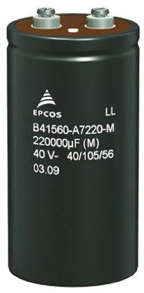 This is Aluminium Electrolytic Capacitor 15000μF 100 V dc 64.3mm Screw Terminal B41560 Series Lifetime 3000h +105°C manufactured by EPCOS. The manufacturer part number is B41560A9159M000. Its diameter is 64.3mm. Furthermore, 34a is the ripple current. The given dimensions of the product include 64.3 x 105.7mm. Furthermore, the lead has 13.2mm diameter. It features a given value of +20% tolerance plus. The product b41560, is a highly preferred choice for users. Whereas, the minimum operating temperature of the product is -40°c. It has 10mω equivalent series resistance. In addition, the height is 105.7mm. It provides a 15000 µf of capacitance value. While it has tolerance minus of -20%. The product has been well-designed with cylindrical construction. It carries a 100 v dc of voltage. It harbors ≤0.018 μa (cr/μf x vr/v)^0.85 + 4 μa of leakage current. It provides a long-lasting service for a period of 3000h. The lead features 28.5mm pitch. It has a maximum operating temperature of +105°c. It features ±20% of tolerance value. The terminal is a screw terminal type. This product use electrolytic technology.
