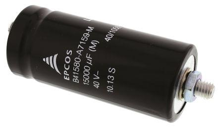 This is Aluminium Electrolytic Capacitor 15000μF 40 V dc 35.7mm Screw Terminal B41580 Series Lifetime 3000h +105°C manufactured by EPCOS. The manufacturer part number is B41580A7159M000. Its diameter is 35.7mm. Furthermore, 34a is the ripple current. The given dimensions of the product include 35.7 x 80.7mm. Furthermore, the lead has 8.2mm diameter. It features a given value of +20% tolerance plus. The product b41580, is a highly preferred choice for users. Whereas, the minimum operating temperature of the product is -40°c. It has 23mω equivalent series resistance. In addition, the height is 80.7mm. It provides a 15000 µf of capacitance value. While it has tolerance minus of -20%. The product has been well-designed with cylindrical construction. It carries a 40 v dc of voltage. It harbors ≤0.018 μa (cr/μf x vr/v)^0.85 + 4 μa of leakage current. It provides a long-lasting service for a period of 3000h. The lead features 12.7mm pitch. It has a maximum operating temperature of +105°c. It features ±20% of tolerance value. The terminal is a screw terminal type. This product use electrolytic technology.
