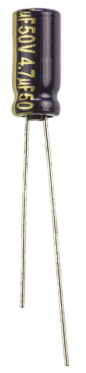 This is Aluminium Electrolytic Capacitor 4.7μF 50V dc 5mm FC Radial Series Through Hole Electrolytic ±20% manufactured by Panasonic. The manufacturer part number is EEUFC1H4R7. Its diameter is 5mm. Furthermore, 95ma is the ripple current. The given dimensions of the product include 5 (dia.) x 11mm. The product is available in radial, through hole configuration. The product fc radial, is a highly preferred choice for users. It has 1.3ω equivalent series resistance. In addition, the height is 11mm. It provides a 4.7µf of capacitance value. It carries a 50v dc of voltage. It harbors 3 μa of leakage current. It provides a long-lasting service for a period of 1000h. The lead features 2mm pitch. It has a maximum operating temperature of +105°c. It features ±20% of tolerance value. Whereas, the minimum operating temperature of the product is -55°c. Furthermore, it is polar polarised. This product use aluminium electrolytic technology.