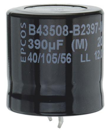 This is Aluminium Electrolytic Capacitor 330μF 450 V dc 25mm Through Hole B43508 B43508 Series Lifetime >200000h manufactured by EPCOS. The manufacturer part number is B43508A5337M000. The given dimensions of the product include 25 (dia.) x 55mm. It has 370mω equivalent series resistance. It provides a 330 µf of capacitance value. It features ±20% of tolerance value. The product has been well-designed with cylindrical construction. It has a maximum operating temperature of +105°c. The terminal is a through hole type. It features a given value of +20% tolerance plus. Furthermore, the lead has 0.8mm diameter. Its accurate length is 55mm. The lead features 10mm pitch. Concerning its package and casing, it is b43508. Its diameter is 25mm. Furthermore, 3.97a is the ripple current. The product is available in through hole configuration. The product b43508, is a highly preferred choice for users. While it has tolerance minus of -20%. It carries a 450 v dc of voltage. Whereas, the minimum operating temperature of the product is -40°c. It provides a long-lasting service for a period of >200000h. This product use electrolytic technology.