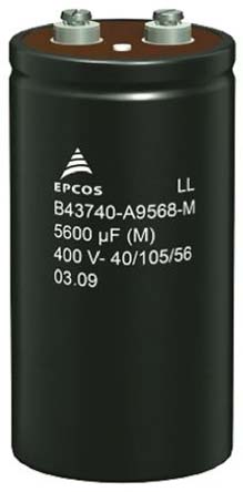 This is Aluminium Electrolytic Capacitor 5600μF 350V dc 76.9mm Screw Terminal B43740 Series Chassis Mount Electrolytic manufactured by EPCOS. The manufacturer part number is B43740A4568M000. Its diameter is 76.9mm. Furthermore, 41a is the ripple current. The given dimensions of the product include 76.9 x 130.7mm. The product is available in screw mount configuration. The product b43740, is a highly preferred choice for users. It has 20mω equivalent series resistance. In addition, the height is 130.7mm. It provides a 5600µf of capacitance value. It carries a 350v dc of voltage. It harbors ≤0.018 μa (cr/μf x vr/v)^0.85 + 4 μa of leakage current. It provides a long-lasting service for a period of 6000h. The lead features 31.7mm pitch. It has a maximum operating temperature of +105°c. It features ±20% of tolerance value. Whereas, the minimum operating temperature of the product is -40°c. This product use aluminium electrolytic technology.