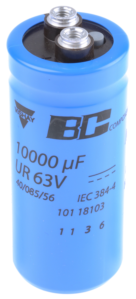 This is Aluminium Electrolytic Capacitor 10000μF 63 V dc 35mm Screw Terminal 101 PHR-ST Series Lifetime 10000h +85°C manufactured by Vishay. The manufacturer part number is MAL210118103E3. Its diameter is 35mm. Furthermore, 8.1a is the ripple current. The given dimensions of the product include 35 (dia.) x 80mm. The product is available in screw terminal configuration. The product 101 phr-st, is a highly preferred choice for users. It has 27mω equivalent series resistance. In addition, the height is 80mm. It provides a 10000µf of capacitance value. It carries a 63v dc of voltage. It harbors 1260 μa of leakage current. It provides a long-lasting service for a period of 10000h. It has a maximum operating temperature of +85°c. It features ±20% of tolerance value. Whereas, the minimum operating temperature of the product is -40°c. This product use aluminium electrolytic technology.