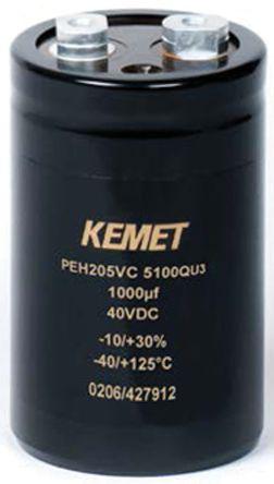 This is KEMET Aluminium Electrolytic Capacitor 0.12F 25V dc 65mm Can - Screw Terminals Radial PEH205 Series manufactured by Kemet. The manufacturer part number is PEH205HO6120QU3. Its diameter is 65mm. Furthermore, 19.8 (a @100 hz 125°c), 54.8 (a @100 hz 85°c), 76.9 (a @100 hz 40°c) is the ripple current. Furthermore, it is polar polarised. The given dimensions of the product include 65 x 105mm. The product is available in screw mount configuration. The product peh205, is a highly preferred choice for users. Whereas, the minimum operating temperature of the product is -55°c. It has 7 mmω equivalent series resistance. In addition, the height is 105mm. It provides a 0.12 f of capacitance value. Its accurate length is 105mm. It carries a 25 v dc of voltage. It harbors 3 μa of leakage current. It provides a long-lasting service for a period of 4000 h @ +125 °c/25v dc/ir. The lead features 28.5mm pitch. It has a maximum operating temperature of +125°c. It features -10 → +30% of tolerance value. This product use electrolytic technology.