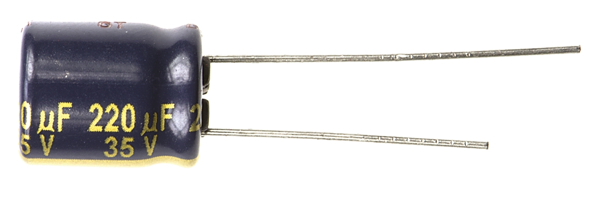 This is Aluminium Electrolytic Capacitor 220μF 35V dc 10mm FC Radial Series Through Hole Electrolytic ±20% manufactured by Panasonic. The manufacturer part number is EEUFC1V221. Its diameter is 10mm. Furthermore, 755ma is the ripple current. Furthermore, it is polar polarised. The given dimensions of the product include 10 (dia.) x 12.5mm. The product is available in radial, through hole configuration. The product fc, is a highly preferred choice for users. It has 90mω equivalent series resistance. In addition, the height is 12.5mm. It provides a 220µf of capacitance value. It carries a 35v dc of voltage. It harbors 3 μa of leakage current. It provides a long-lasting service for a period of 3000h. The lead features 5mm pitch. It has a maximum operating temperature of +105°c. It features ±20% of tolerance value. Whereas, the minimum operating temperature of the product is -55°c. This product use aluminium electrolytic technology.