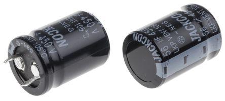This is Aluminium Electrolytic Capacitor 56μF 450V dc 22mm RS Series Aluminium Electrolytic Through Hole Electrolytic manufactured by RS Pro. The manufacturer part number is 706-3279. The given dimensions of the product include 22 (dia.) x 30mm. It provides a dissipation factor of 20%. It provides a 56 µf of capacitance value. It features ±20% of tolerance value. Whereas its dielectric material family is aluminium electrolytic. It has a maximum operating temperature of +105°c. It features a given value of 20% tolerance plus. Furthermore, the lead has 1.45mm diameter. Its accurate length is 30mm. It harbors <=0.02 cv @ 5 min of leakage current. The lead features 10mm pitch. Furthermore, it is polar polarised. Its diameter is 22mm. Furthermore, 550ma is the ripple current. The product is available in through hole configuration. The product rs, is a highly preferred choice for users. In addition, the height is 30mm. While it has tolerance minus of -20%. It carries a 450 v dc of voltage. Whereas, the minimum operating temperature of the product is -25°c. It provides a long-lasting service for a period of 2000h. This product use electrolytic technology.