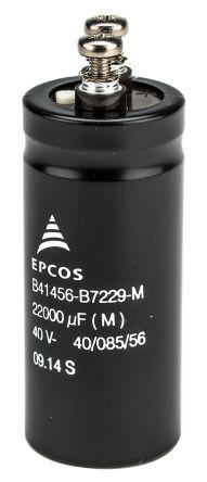 This is Aluminium Electrolytic Capacitor 22000μF 40 V dc 35.7mm Screw Terminal B41456 Series Lifetime 12000h +85°C manufactured by EPCOS. The manufacturer part number is B41456B7229M. Its diameter is 35.7mm. Furthermore, 9.6a is the ripple current. The given dimensions of the product include 35.7 (dia.) x 80.7mm. It features a given value of +20% tolerance plus. The product b41456, is a highly preferred choice for users. It has 10mω equivalent series resistance. In addition, the height is 80.7mm. It provides a 22000 µf of capacitance value. While it has tolerance minus of -20%. The product has been well-designed with metal can construction. It carries a 40 v dc of voltage. Whereas, the minimum operating temperature of the product is -40°c. It provides a long-lasting service for a period of 12000h. It has a maximum operating temperature of +85°c. It features ±20% of tolerance value. The terminal is a screw terminal type. This product use electrolytic technology.