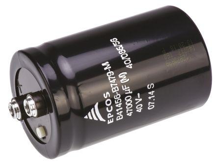 This is Aluminium Electrolytic Capacitor 47000μF 40 V dc 51.6mm Screw Terminal B41456 Series Lifetime 12000h +85°C manufactured by EPCOS. The manufacturer part number is B41456B7479M. Its diameter is 51.6mm. Furthermore, 13a is the ripple current. The given dimensions of the product include 51.6 (dia.) x 80.7mm. The product is available in chassis mount configuration. It features a given value of +20% tolerance plus. The product b41456, is a highly preferred choice for users. It has 6mω equivalent series resistance. In addition, the height is 80.7mm. It provides a 47000 µf of capacitance value. While it has tolerance minus of -20%. The product has been well-designed with metal can construction. It carries a 40 v dc of voltage. Whereas, the minimum operating temperature of the product is -40°c. It provides a long-lasting service for a period of 12000h. It has a maximum operating temperature of +85°c. It features ±20% of tolerance value. The terminal is a screw terminal type. This product use electrolytic technology.