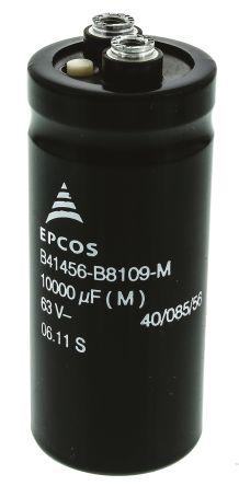 This is Aluminium Electrolytic Capacitor 10000μF 63 V dc 35.7mm Screw Terminal B41456 Series Lifetime 12000h +85°C manufactured by EPCOS. The manufacturer part number is B41456B8109M. Its diameter is 35.7mm. It features a given value of +20% tolerance plus. Furthermore, 7.7a is the ripple current. The given dimensions of the product include 35.7 (dia.) x 80.7mm. The terminal is a screw terminal type. The product b41456, is a highly preferred choice for users. It has 16mω equivalent series resistance. In addition, the height is 80.7mm. It provides a 10000 µf of capacitance value. While it has tolerance minus of -20%. The product has been well-designed with metal can construction. It carries a 63 v dc of voltage. Whereas, the minimum operating temperature of the product is -40°c. It provides a long-lasting service for a period of 12000h. It has a maximum operating temperature of +85°c. It features ±20% of tolerance value. This product use electrolytic technology.