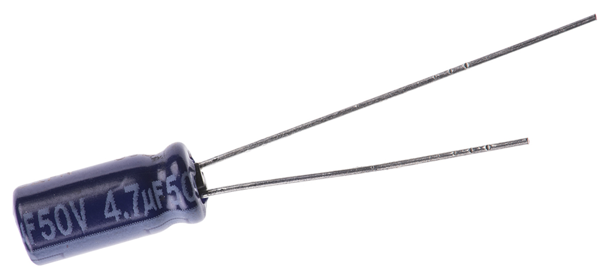 This is Aluminium Electrolytic Capacitor 4.7μF 50V dc 5mm M Series Aluminium Through Hole Electrolytic ±20% manufactured by Panasonic. The manufacturer part number is ECA1HM4R7. Its diameter is 5mm. Furthermore, 45ma is the ripple current. Furthermore, it is polar polarised. The given dimensions of the product include 5 (dia.) x 11mm. The product is available in radial, through hole configuration. The product m-a, is a highly preferred choice for users. In addition, the height is 11mm. It provides a 4.7µf of capacitance value. It carries a 50v dc of voltage. It harbors 3 μa of leakage current. It provides a long-lasting service for a period of 2000h. The lead features 2mm pitch. It has a maximum operating temperature of +85°c. It features ±20% of tolerance value. Whereas, the minimum operating temperature of the product is -40°c. This product use aluminium electrolytic technology.