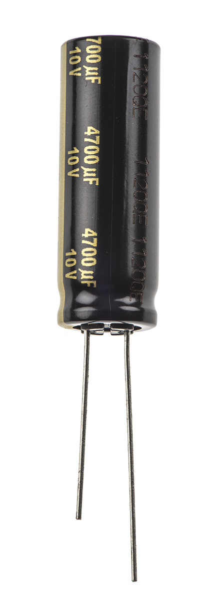 This is Aluminium Electrolytic Capacitor 4700μF 10 V dc 12.5mm Through Hole FM Radial Series Lifetime 7000h +105°C manufactured by Panasonic. The manufacturer part number is EEUFM1A472L. Its diameter is 12.5mm. Furthermore, 3.75a is the ripple current. Furthermore, it is polar polarised. The given dimensions of the product include 12.5 (dia.) x 35mm. The product is available in radial, through hole configuration. The product fm-a, is a highly preferred choice for users. In addition, the height is 35mm. It provides a 4700µf of capacitance value. It carries a 10v dc of voltage. Whereas, the minimum operating temperature of the product is -40°c. It provides a long-lasting service for a period of 7000h. The lead features 5mm pitch. It has a maximum operating temperature of +105°c. It features ±20% of tolerance value. This product use aluminium electrolytic technology.