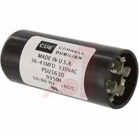 This is Capacitor Motor Start;36 to 43uF;Case 2 manufactured by Cornell-Dubilier. The manufacturer part number is PSU3630.