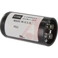 This is CAPACITOR;AL ELECTROLYTIC;CAP 53-64UF; MOTOR START;VOL-RTG 220/250VAC manufactured by Cornell-Dubilier. The manufacturer part number is PSU5335.