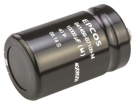 This is Aluminium Electrolytic Capacitor 10000μF 40V dc 35.7mm Screw Terminal B41456 Series Electrolytic ±20% manufactured by EPCOS. The manufacturer part number is B41456B7109M. Its diameter is 35.7mm. It features a given value of +20% tolerance plus. Furthermore, 6.3a is the ripple current. The given dimensions of the product include 35.7 (dia.) x 55.7mm. The terminal is a screw terminal type. The product b41456, is a highly preferred choice for users. It has 19mω equivalent series resistance. In addition, the height is 55.7mm. It provides a 10000 µf of capacitance value. While it has tolerance minus of -20%. The product has been well-designed with metal can construction. It carries a 40 v dc of voltage. Whereas, the minimum operating temperature of the product is -40°c. It provides a long-lasting service for a period of 12000h. It has a maximum operating temperature of +85°c. It features ±20% of tolerance value. This product use electrolytic technology.