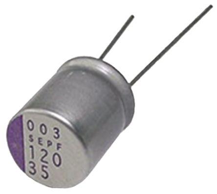 This is Aluminium Polymer Capacitor 820μF 2.5 V 8mm Through Hole E9 OS-CON SEP Series Lifetime 5000h +105°C manufactured by Panasonic. The manufacturer part number is 2SEPC820MY. The given dimensions of the product include 8 x 9mm. It has 5mω equivalent series resistance. It provides a 820 µf of capacitance value. It features ±20% of tolerance value. The product has been well-designed with radial construction. It has a maximum operating temperature of +105°c. The terminal is a through hole type. It features a given value of +20% tolerance plus. Furthermore, the lead has 0.6mm diameter. Its accurate length is 9mm. It harbors 500 μa of leakage current. The lead features 3.5mm pitch. Concerning its package and casing, it is e9. Its diameter is 8mm. Furthermore, 7.2a is the ripple current. The product is available in through hole configuration. The product os-con sep, is a highly preferred choice for users. While it has tolerance minus of -20%. It carries a 2.5 v of voltage. Whereas, the minimum operating temperature of the product is -55°c. It provides a long-lasting service for a period of 5000h. This product use polymer technology.