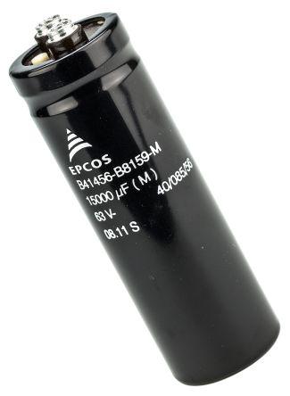 This is Aluminium Electrolytic Capacitor 15000μF 63 V dc 35.7mm Screw Terminal B41456 Series Lifetime 12000h +85°C manufactured by EPCOS. The manufacturer part number is B41456B8159M. Its diameter is 35.7mm. Furthermore, 10a is the ripple current. The given dimensions of the product include 35.7 (dia.) x 105.7mm. The product is available in chassis mount configuration. The product b41456, is a highly preferred choice for users. It has 11mω equivalent series resistance. In addition, the height is 105.7mm. It provides a 15000 µf of capacitance value. It carries a 63 v dc of voltage. Whereas, the minimum operating temperature of the product is -40°c. It provides a long-lasting service for a period of 12000h. It has a maximum operating temperature of +85°c. It features ±20% of tolerance value. This product use electrolytic technology.