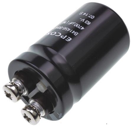 This is Aluminium Electrolytic Capacitor 4700μF 63 V dc 35.7mm Screw Terminal B41456 Series Lifetime 12000h +85°C manufactured by EPCOS. The manufacturer part number is B41456B8478M. Its diameter is 35.7mm. Furthermore, 4.9a is the ripple current. The given dimensions of the product include 35.7 (dia.) x 55.7mm. It features a given value of +20% tolerance plus. The product b41456, is a highly preferred choice for users. It has 30mω equivalent series resistance. In addition, the height is 55.7mm. It provides a 4700 µf of capacitance value. While it has tolerance minus of -20%. The product has been well-designed with metal can construction. It carries a 63 v dc of voltage. Whereas, the minimum operating temperature of the product is -40°c. It provides a long-lasting service for a period of 12000h. It has a maximum operating temperature of +85°c. It features ±20% of tolerance value. The terminal is a screw terminal type. This product use electrolytic technology.