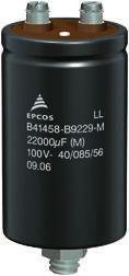 This is Aluminium Capacitor 10000μF 100V dc 51.6mm Screw Terminal B41580 Series Chassis Mount Electrolytic ±20% manufactured by EPCOS. The manufacturer part number is B41580A9109M000. The given dimensions of the product include 51.6 x 105.7mm. It has 14mω equivalent series resistance. It provides a 10000 µf of capacitance value. It features ±20% of tolerance value. The product has been well-designed with cylindrical construction. It has a maximum operating temperature of +105°c. The terminal is a screw terminal type. It features a given value of +20% tolerance plus. Furthermore, the lead has 10.2mm diameter. It harbors ≤0.018 μa (cr/μf x vr/v)^0.85 + 4 μa of leakage current. The lead features 22.2mm pitch. Its diameter is 51.6mm. Furthermore, 45a is the ripple current. The product is available in chassis mount configuration. The product b41580, is a highly preferred choice for users. In addition, the height is 105.7mm. While it has tolerance minus of -20%. It carries a 100 v dc of voltage. Whereas, the minimum operating temperature of the product is -40°c. It provides a long-lasting service for a period of 3000h. This product use electrolytic technology.