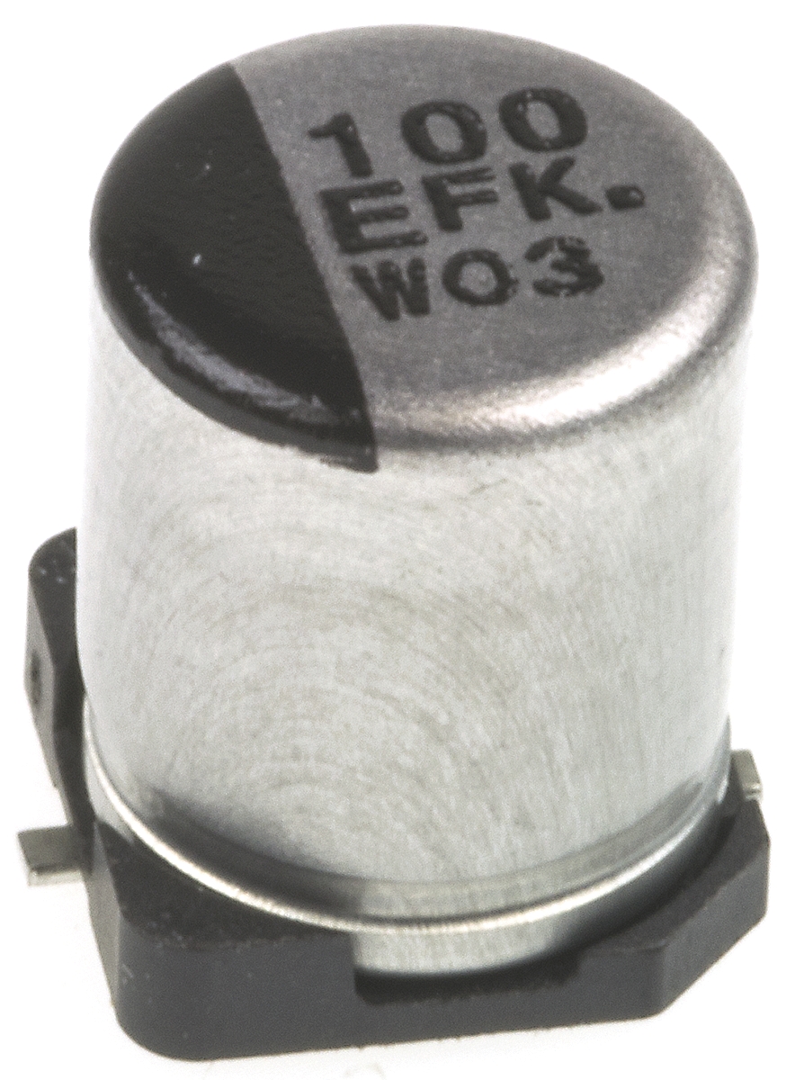 This is Aluminium Electrolytic Capacitor 100μF 25V dc 6.3mm FK SMD Series Surface Mount Electrolytic ±20% manufactured by Panasonic. The manufacturer part number is EEEFK1E101XP. Its diameter is 6.3mm. Furthermore, 280ma is the ripple current. The given dimensions of the product include 6.3 (dia.) x 7.7mm. The product is available in surface mount configuration. The product fk, is a highly preferred choice for users. Whereas, the minimum operating temperature of the product is -55°c. It provides a dissipation factor of 200%. In addition, the height is 7.7mm. It provides a 100µf of capacitance value. Its accurate length is 7.7mm. It carries a 25v dc of voltage. It harbors 3 μa of leakage current. It provides a long-lasting service for a period of 2000h. It has a maximum operating temperature of +105°c. It features ±20% of tolerance value. The product complies with automotive standard - aec-q200. Furthermore, it is polar polarised. This product use aluminium electrolytic technology.