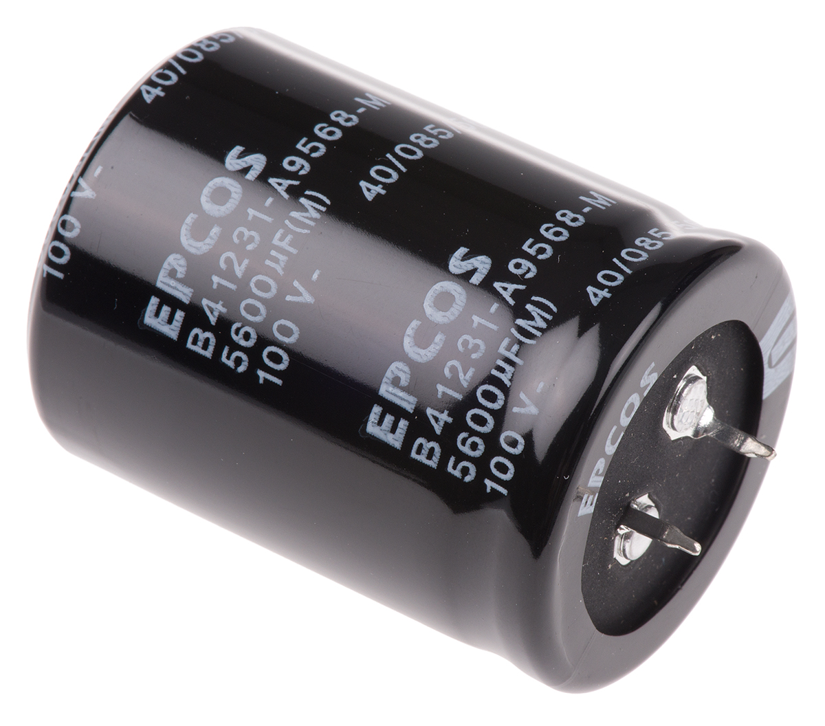 This is Aluminium Electrolytic Capacitor 5600μF 100V dc 35mm B41231 Series Through Hole Electrolytic ±20% manufactured by EPCOS. The manufacturer part number is B41231A9568M000. Its diameter is 35mm. Furthermore, 6.34a is the ripple current. The given dimensions of the product include 35 (dia.) x 45mm. The product is available in snap-in configuration. The product b41231, is a highly preferred choice for users. In addition, the height is 45mm. It provides a 5600µf of capacitance value. It carries a 100v dc of voltage. It harbors <=0.02 μa of leakage current. It provides a long-lasting service for a period of 2000h. The lead features 10mm pitch. It has a maximum operating temperature of +85°c. It features ±20% of tolerance value. Whereas, the minimum operating temperature of the product is -40°c. This product use aluminium electrolytic technology.