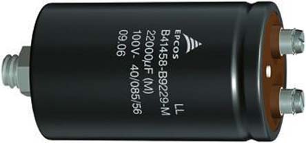 This is 22000μF Electrolytic Capacitor 100V dc Screw Mount - B41570A9229Q manufactured by EPCOS. The manufacturer part number is B41570A9229Q000. Its diameter is 76.9mm. Furthermore, 19a is the ripple current. The given dimensions of the product include 76.9 (dia.) x 105.7mm. The product is available in screw mount configuration. The product b41570, is a highly preferred choice for users. It has 11mω equivalent series resistance. In addition, the height is 105.7mm. It provides a 22000µf of capacitance value. It carries a 100v dc of voltage. Whereas, the minimum operating temperature of the product is -55°c. It provides a long-lasting service for a period of 20000h. It has a maximum operating temperature of +105°c. It features -10 to +30% of tolerance value. This product use aluminium electrolytic technology.