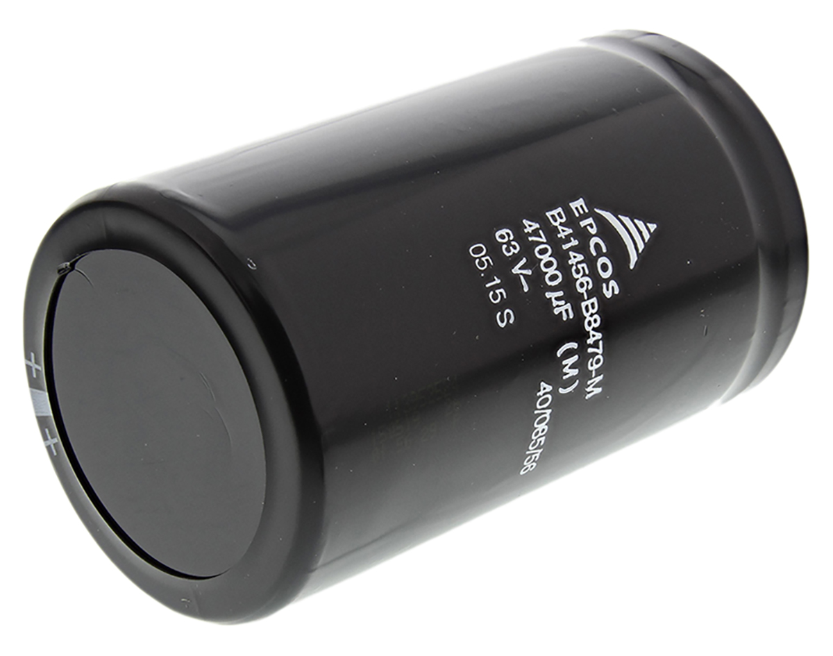 This is 47000μF Aluminium Electrolytic Capacitor 63V dc Screw Terminal - manufactured by EPCOS. The manufacturer part number is B41456B8479M600. Its diameter is 64.3mm. Furthermore, 18a is the ripple current. The given dimensions of the product include 64.3 (dia.) x 105.7mm. The product is available in screw terminal configuration. The product b41456, is a highly preferred choice for users. It has 5mω equivalent series resistance. In addition, the height is 105.7mm. It provides a 47000µf of capacitance value. It carries a 63v dc of voltage. Whereas, the minimum operating temperature of the product is -40°c. It provides a long-lasting service for a period of 12000h. It has a maximum operating temperature of +85°c. It features ±20% of tolerance value. This product use aluminium electrolytic technology.