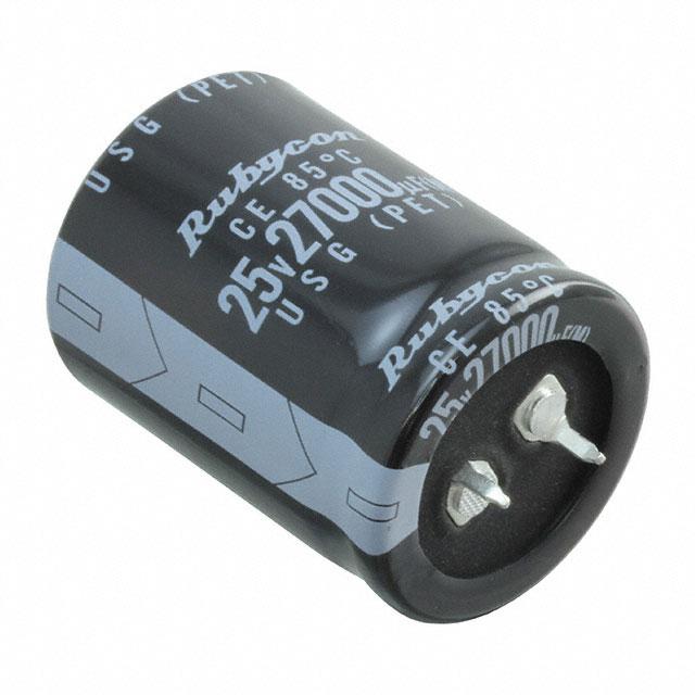 This is manufactured by Rubycon. The manufacturer part number is 25USG27000MEFCSN30X40. It is assigned with possible HTSUS value of 8532.22.0040. The product is rohs3 compliant. The product features a [Ploarization] polarity. It provides a 27000 µf of capacitance value. The product has -40°c ~ 85°c operating temperature range. Moreover, the product comes in radial, can - snap-in. It features ±20% of tolerance value. It also exhibits voltage rating of 25 v. It has the maximum seated height of 1.654" (42.00mm). Additionally, it carries a ripple current and high frequency of 6.923 a @ 100 khz. In addition, it is reach unaffected. Its ripple current at low frequency is 6.02 a @ 120 hz. The product is widely employed in general purpose. The product's diameters include 1.181" dia (30.00mm). It has a long 24 weeks standard lead time. Its typical moisture sensitivity level is not applicable. The product is available in through hole configuration. The product usg, is a highly preferred choice for users. In addition, bulk is the available packaging type of the product. This product offers longer life span for 3000 hrs @ 85°c. It is assigned with 0.394" (10.00mm) of lead spacing. The product is designated with the ear99 code number.