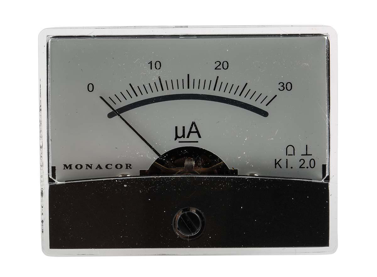 This is PM-2 Analogue Panel Ammeter 30μA Moving Coil manufactured by Monacor. The manufacturer part number is PM-2/30UA. Its meter accuracy is class 2 . The product pm-2, is a highly preferred choice for users. The product comes in 23mm depth. It contains a moving coil . Additionally, it has a maximum 30µa value .