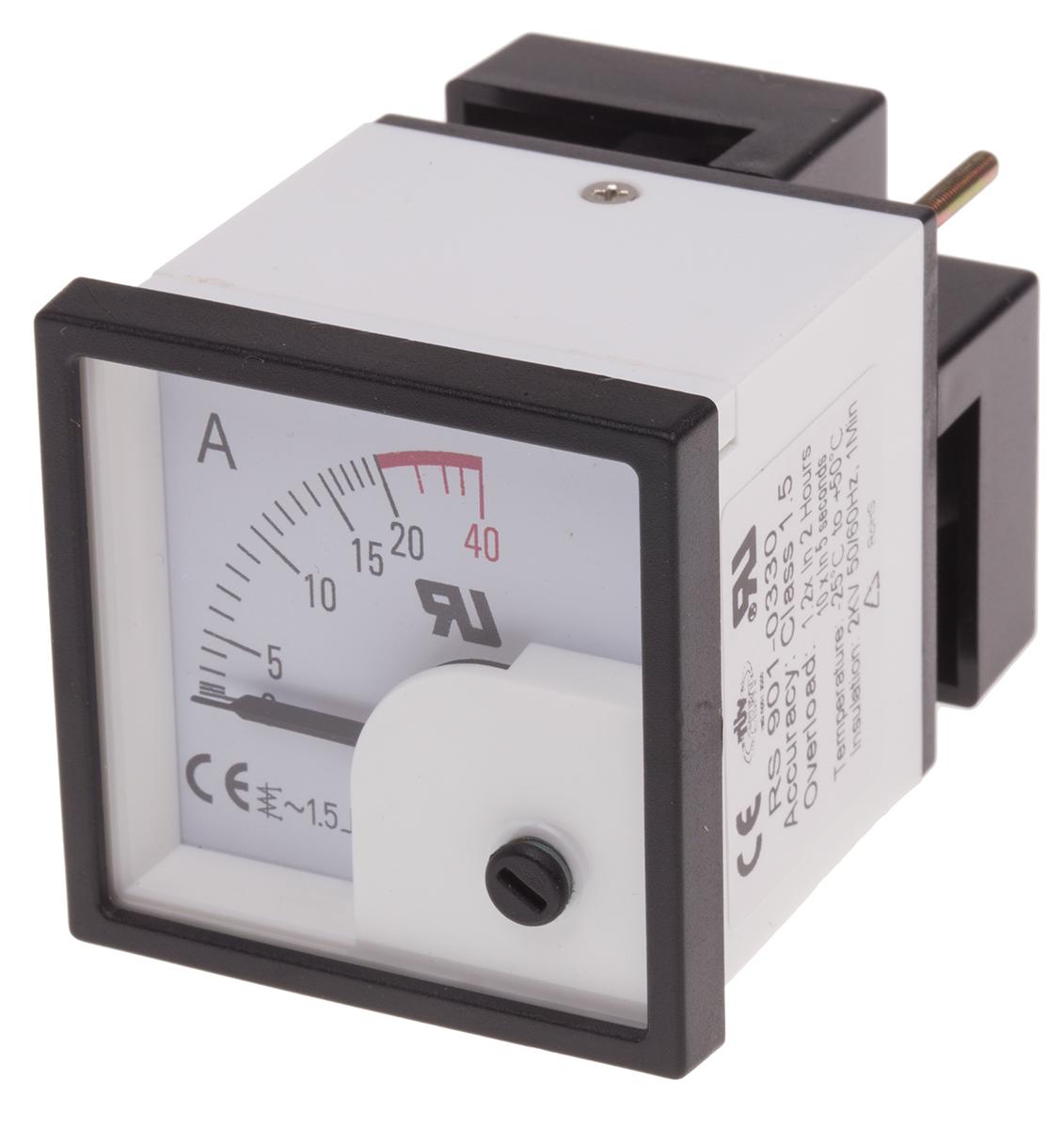 This is Analogue Panel Ammeter 40A AC 46mm x 46mm ±1.5 % Moving Iron manufactured by RS Pro. The manufacturer part number is 901-0330. It contains a moving iron . The product has +50°c maximum temperature. Moreover, its cutout is 46mm in width . The product rs pro, is a highly preferred choice for users. Its meter accuracy is ±1.5 % . It has a minimum 0a display value . This product harbours ac current. The product comes in 39mm depth. While its minimum temperature is -25°c. The product complies with ce, rohs compliant, tuv certified. Its cutout height is 46mm . Additionally, it has a maximum 20a value . Its measurement range is 0 → 40a .