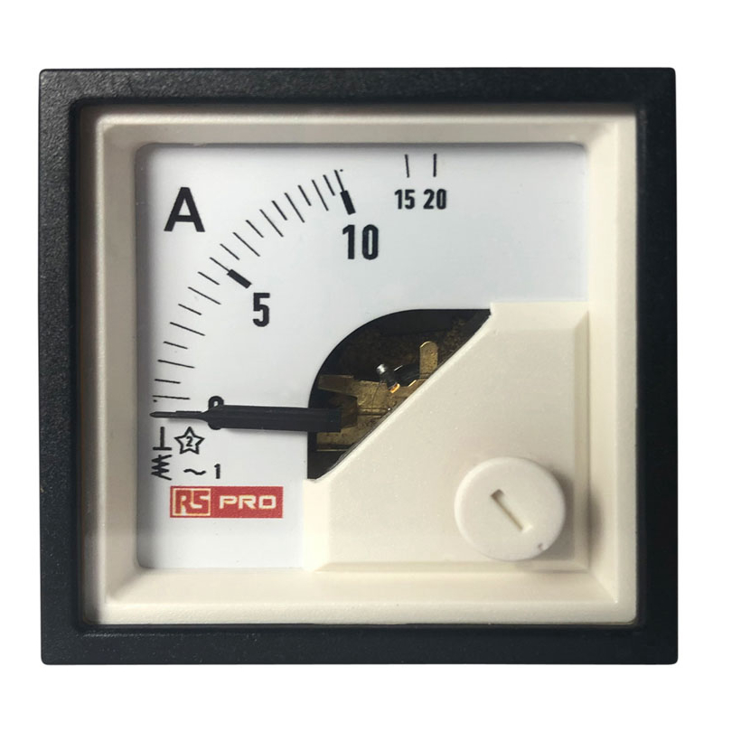 This is Analogue Panel Ammeter 20 (Input)A AC 48mm x 48mm 1 % Moving Iron manufactured by RS PRO. The manufacturer part number is 186-2422. It contains a moving iron . The product has +65°c maximum temperature. Moreover, its cutout is 45mm in width . While its minimum temperature is -10°c. Its meter accuracy is 1 % . It has a minimum 0 (input)a display value . This product harbours ac current. The product comes in 54 (<30 a)mm depth. Its cutout height is 45mm . Additionally, it has a maximum 20 (input)a value . Its measurement range is 0 → 20 (input)a .