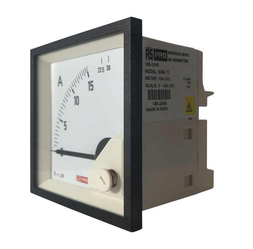 This is Analogue Panel Ammeter 30 (Input)A AC 72mm x 72mm 1 % Moving Iron manufactured by RS PRO. The manufacturer part number is 186-2448. It contains a moving iron . The product has +65°c maximum temperature. Moreover, its cutout is 68mm in width . While its minimum temperature is -10°c. Its meter accuracy is 1 % . It has a minimum 0 (input)a display value . This product harbours ac current. The product comes in 54 (<30 a) mm, 62 (30 → 60 a) mm depth. Its cutout height is 68mm . Additionally, it has a maximum 30 (input)a value . Its measurement range is 0 → 30 (input)a .