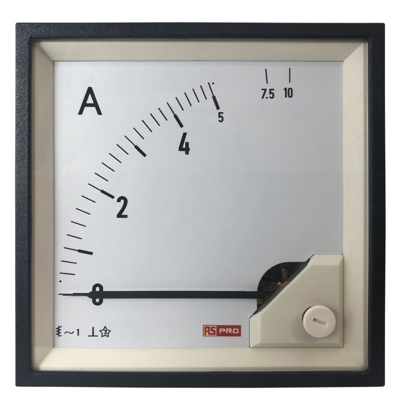 This is Analogue Panel Ammeter 10 (Input Scale)A AC 96mm x 96mm 1 % Moving Iron manufactured by RS PRO. The manufacturer part number is 186-2462. It contains a moving iron . The product has +65°c maximum temperature. Moreover, its cutout is 92mm in width . While its minimum temperature is -10°c. Its meter accuracy is 1 % . It has a minimum 0 (input, scale)a display value . This product harbours ac current. The product comes in 54 (<30 a)mm depth. Its cutout height is 92mm . Additionally, it has a maximum 10 (input, scale)a value . Its measurement range is 0 → 10 (input, scale)a .