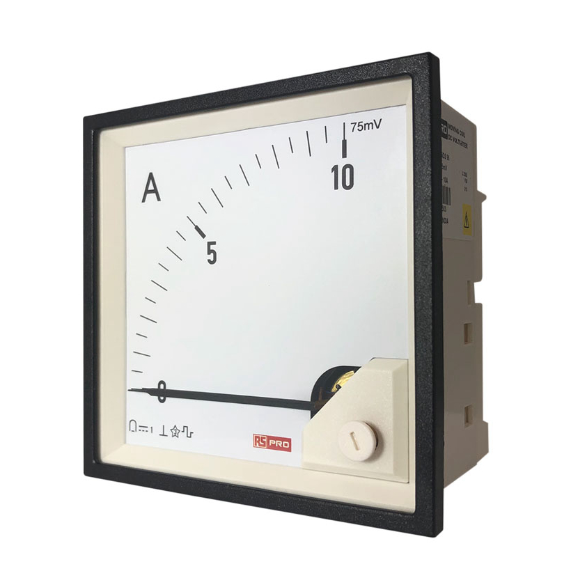 This is Analogue Panel Ammeter DC 96mm x 96mm 1 % Moving Coil manufactured by RS PRO. The manufacturer part number is 186-2503. It contains a moving coil . The product has +65°c maximum temperature. Moreover, its cutout is 92mm in width . While its minimum temperature is -10°c. Its meter accuracy is 1 % . This product harbours dc current. The product comes in 54 (<4 a) mm, 67 (5 → 60 a) mm, 67 (60 → 100 a) mm depth. Its cutout height is 92mm . Additionally, it has a maximum 0/10a for shunt 75mv value . Its measurement range is 0/10a for shunt 75mv .