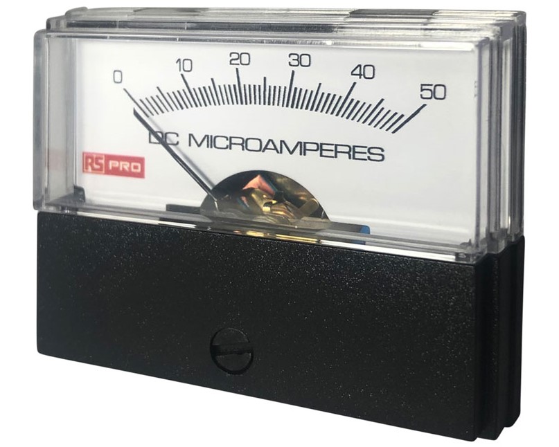 This is Analogue Panel Ammeter 50 (Input)μA DC 57mm x 44mm 1.5 % Moving Coil manufactured by RS PRO. The manufacturer part number is 186-2535. It contains a moving coil . The product has +60°c maximum temperature. Moreover, its cutout is 44mm in width . While its minimum temperature is 0°c. Its meter accuracy is ±1.5 % . This product harbours dc current. The product comes in 45.7mm depth. Its cutout height is 57mm . Additionally, it has a maximum 50 (input)µa value .