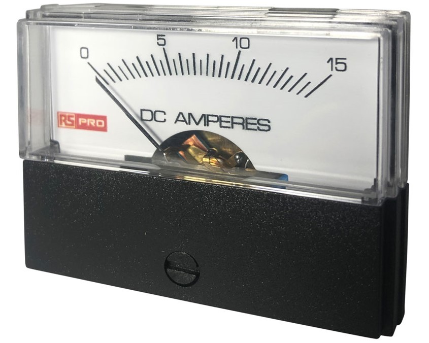 This is Analogue Panel Ammeter 15 (Input)A DC 57mm x 44mm 1.5 % Moving Coil manufactured by RS PRO. The manufacturer part number is 186-2538. It contains a moving coil . The product has +60°c maximum temperature. Moreover, its cutout is 44mm in width . While its minimum temperature is 0°c. Its meter accuracy is ±1.5 % . It has a minimum 0 (input)a display value . This product harbours dc current. The product comes in 45.7mm depth. Its cutout height is 57mm . Additionally, it has a maximum 15 (input)a value . Its measurement range is 0 → 15 (input)a .