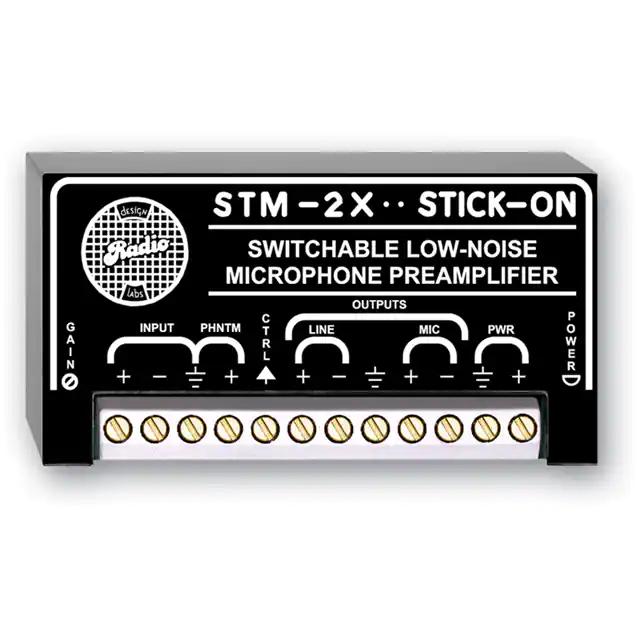 This is manufactured by Radio Design Labs. The manufacturer part number is RDL STM-2X. Its typical moisture sensitivity level is not applicable. It is shipped in bulk package . The product stick-on®, is a highly preferred choice for users. The product is rohs3 compliant. In addition, it is vendor undefined. The product is suitable for use with audio applications. It comes in microphone preamplifier configuration.