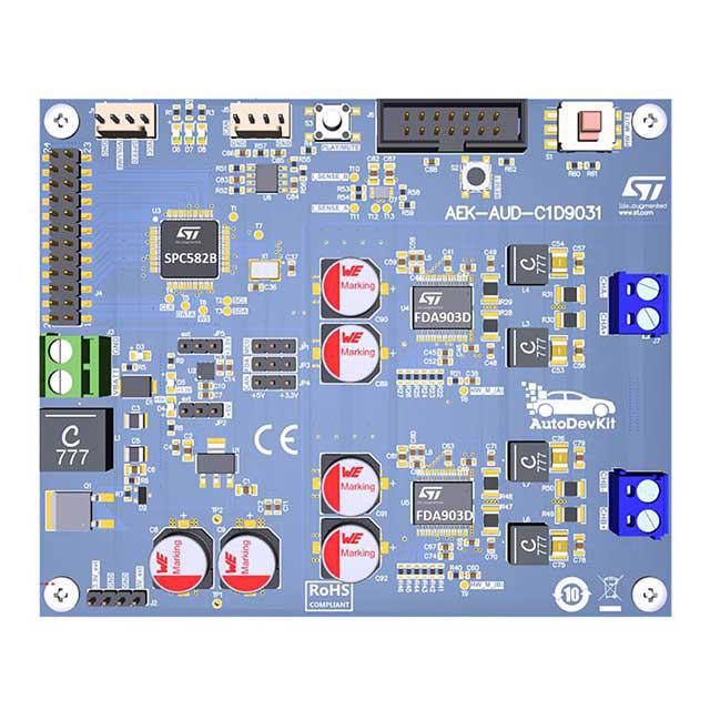 This is manufactured by STMicroelectronics. The manufacturer part number is AEK-AUD-C1D9031. This kit is known as avas solution based on spc582b60e1 chorus family mcu and fda903d class d audio amplifier, consists of highly versatile and user-desired tools. Featured Device spc582b60e1. Moreover, it has a/an audio amplifier analogue function . The kit is classified as evaluation board. The product is highly suitable for fda903d class d amplifier. It is assigned with possible HTSUS value of 8543.70.9810. The product is rohs3 compliant. The secondary attributes of the product include: i2c interface. It comes in audio configuration. It performs basic function of amplifier, dual. Primary Attributes of the Product: 2-channel (dual). In addition, it is reach unaffected. Embedding Options: yes, mcu, 32-bit. It is shipped in bulk package . Its typical moisture sensitivity level is 1 (unlimited). It has a long 54 weeks standard lead time. Additionally, [Utilised IC / Part] is the used part of the product. The product is also supplied with contents, such as board(s). The product is designated with the ear99 code number.