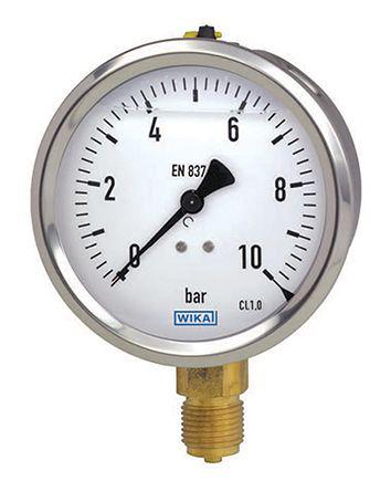 This is Analogue Positive Pressure Gauge Back Entry 1500psi Connection Size 1/4 NPT manufactured by Wika Instruments. The manufacturer part number is 9768165. In addition, it is offered with ±2/1/2 % best accuracy . Moreover, its gauge outside diameter is approximately 63mm . Moreover, it has a maximum 1500psi pressure measurement . It has a standard 1/4 npt size connection . The casing is constructed from highly stable 304 stainless steel material. Whereas, the minimum operating temperature of the product is -20°c. It has a maximum operating temperature of +60°c. It has a pressure gauge of back entry type .