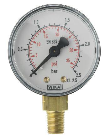 This is Analogue Positive Pressure Gauge Bottom Entry 2.5bar Connection Size R 1/8 manufactured by WIKA. The manufacturer part number is 7833968. In addition, it is offered with ±2.5 % best accuracy . Moreover, its gauge outside diameter is approximately 50mm . Moreover, it has a maximum 2.5bar pressure measurement . It has a standard r 1/8 size connection . Additionally, it has a minimum 0bar pressure measurement . The casing is constructed from highly stable plastic material. Whereas, the minimum operating temperature of the product is -40°c. It has a maximum operating temperature of +60°c. It has a pressure gauge of bottom entry type .