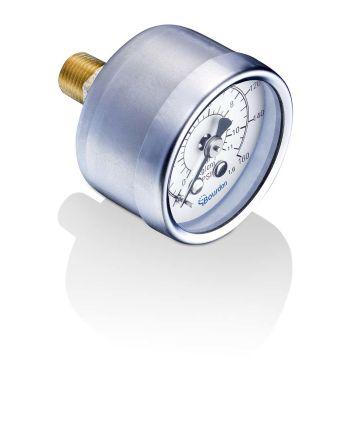 This is Pressure gauge for pneumatic control 40 manufactured by Bourdon. The manufacturer part number is MTR1 F40 B21 07 BAR/KG/CM2/PSI. In addition, it is offered with ±1.6 % best accuracy . Moreover, its gauge outside diameter is approximately 40mm . Moreover, it has a maximum 7bar pressure measurement . The casing is constructed from highly stable stainless steel material. Whereas, the minimum operating temperature of the product is -40°c. It has a maximum operating temperature of +60°c. Additionally, it has a minimum 0bar pressure measurement . It has a pressure gauge of back entry type .