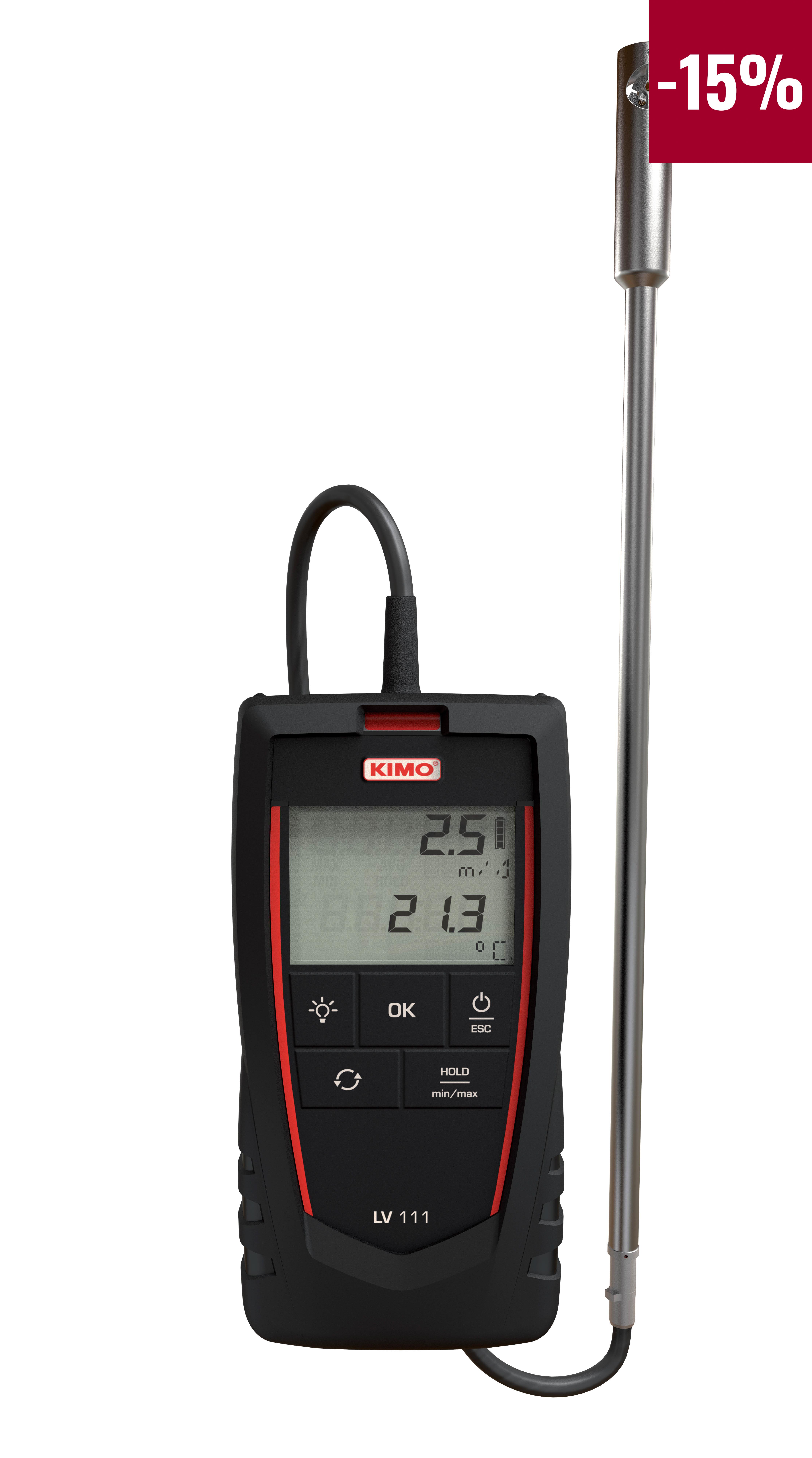 This is Rotary Vane 25m/s Max Air Velocity Air Flow Air Velocity Anemometer manufactured by KIMO. The manufacturer part number is LV 111 S. The probe is basically a rotary vane probe. Its air velocity resolution is 0.1m/s . It has the best air velocity accuracy about ±3 % . Additionally, the maximum air velocity is 25m/s . Moreover, it has air flow, air velocity measurement parameters .