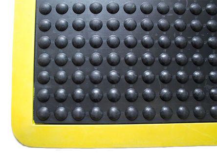 This is Bubblemat Safety Interlinking Rubber Anti-Fatigue Mat x 900mm 1.2m x 14mm manufactured by COBA. The manufacturer part number is BF010706. Anti-Slip Options - no. Its mat is made up of rubber material . It is recommended for dry type environment . It has a decent black, yellow colour. It is resistant to chemical no . Additionally, it is oil resistant no . Its accurate length is 1.2m. It is 14mm thick. The product has a/an interlinking format . Furthermore, the product is 900mm wide. It features bubblemat safety range. The surface is solid type.